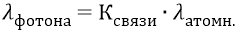 меньшей опытной, то мы можем, в первом приближении, ввести в свои расчёты коэффициент К=1,068, физика которого может объясниться «сшиванием» двух полупериодов двух полуволн того полного фотона, который излучается двумя разными атомами в одно и то же время и воспринимается физиками как излучение одним атомом полного фотона. Поэтому запишем для всех наших фотонов: