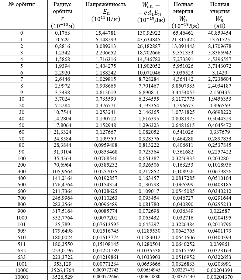 что будет соответствовать и опыту физиков, и нашим расчётам энергий, занесённым в таблицу 2.1.