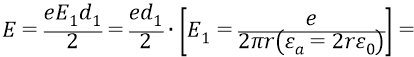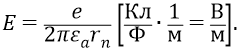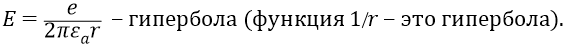 2. В результате этого действия получена формула для напряжённости поля, предполагающая зависимость поля от расстояния орбиты – обратнопропорциональную не квадрату радиуса орбиты, но первой степени этого радиуса: