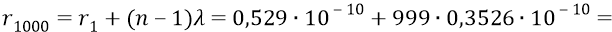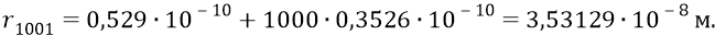 7. В качестве дополнительного вывода по данному примеру – рассмотрим резкое различие радиусов удалённости тысячной орбиты в теории Бора и в нашей теории атома.