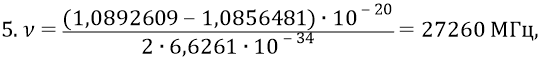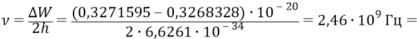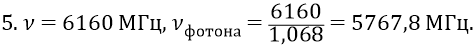 5. Теперь мы можем найти частоту фотона, соответствующего в каждом атоме порции энергии, равной разности энергий уровней 1001 и 1000, но фотона, излучаемого сразу двумя атомами: