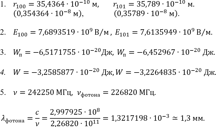 Теперь рассчитаем по нашей методике тот переход, который будет соответствовать переходу физиков