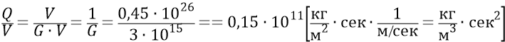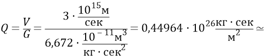 Сейчас всё-таки попробуем определить порядки числовых значений обсуждавшихся величин. Одну из этих величин, а именно – скорость гравитационного излучения V, придётся выбрать, хотя и не «с потолка», но из многих соображений, равной величине, допустим (для «ровного счёта»),