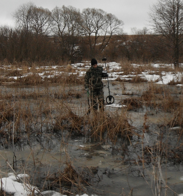 Так вот, мы бродили, колотили и копали отходящую от зимы землю на пригорке, на котором моим камрадам почудилась исчезнувшая старинная деревенька. Ну не знаю, кроме какой—то шрапнели и забытого кем—то длинного кабеля средь берёз здесь ничего не было. И когда в голову начал закрадываться сакраментальный вопрос, с той стороны ручья донеслось: Э—э—й! Идите сюда—а—а!!!