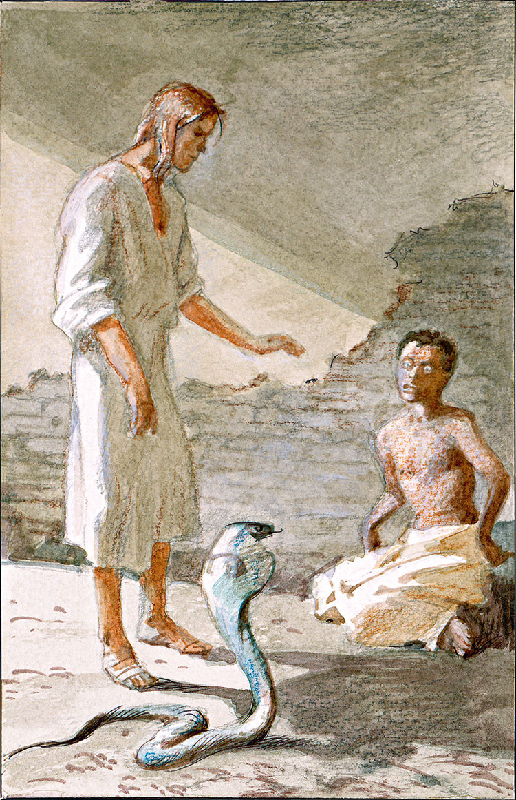 Сатья подошел к новичку, приподнял за подбородок его голову и повелительно сказал, строго посмотрев в глаза: