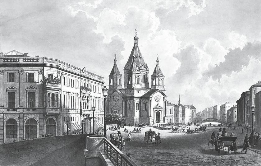 Церковь Благовещения в XIX веке, литография по рисунку И. Шарлеманя.