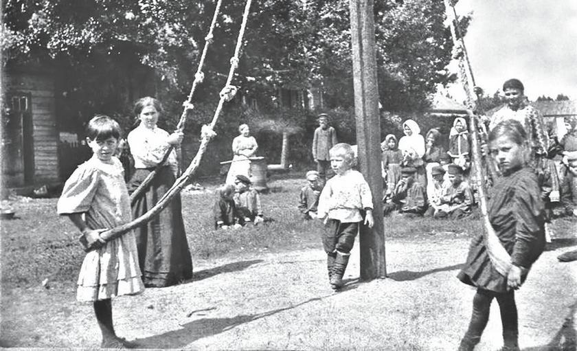 Гигантские шаги – любимая забава не только мальчишек, но и барышень.