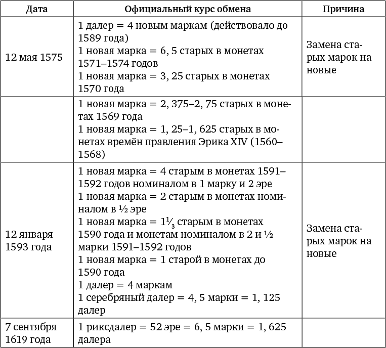 Официальные курсы обмена шведских денежных единиц в 1575–1619 годах [18. P. 133–238]