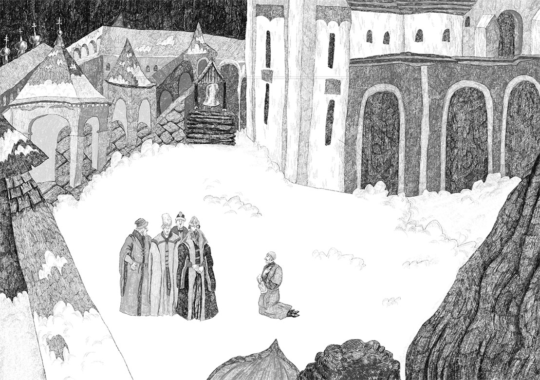 И уже чрез долгое время обратились сердцем и соболезновали о дочери своей, тако ж и о Фроле Скобееве. И приказали послать человека к ним, и просил их, чтоб Фрол Скобеев и с женой своею, а сь их дочерью, приехал к столнику Нардину-Нащокину кушать.