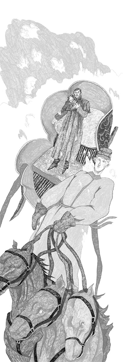 Заложил правую рукавицу под левую мышку, повел обнаженной рукой над тройкою, гаркнул – и кони взвились как вихорь! Дух занялся у меня от быстроты их поскока: они понесли нас.