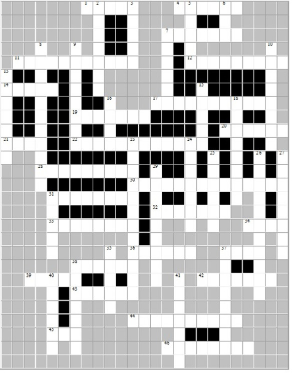 По горизонтали: 1. Насаженное на рукоятку металлическое орудие для рубки с лезвием и обухом. 4. Животное, вид оленя. Объект охоты. 7. Неукрепленное поселение охотников и рыболовов каменного века. 11. Ископаемый человек современного вида эпохи позднего палеолита.12. Пещера в Испании, в которой была найдена настенная живопись первобытных людей. 14. Парнокопытное животное. Объект охоты первобытных людей. 17. Добыча рыбы.19. Ущелье в Восточной Африке, в котором в середине XX в. были найдены орудия труда и кости «человека умелого». 20. Гладкий округлый камень 21. Орудие труда, используемое при изготовлении одежды 22. Наука о происхождении и развитии человека 28. Художественное творчество. 30. Одно из первых занятий человека. 31. Древний каменный век 32. Вера в существование богов, сверхъестественных сил и загробного мира. 33. Испанский археолог, открывший пещерную живопись. 34. Небольшое животное, предмет охоты первобытных людей. 36. Режущий инструмент для сверления. 37. Способ выражения и обозначения количества чего-либо. 38. Огромный слон с длинной рыжей шерстью, хорошо переносивший холодный климат. Был современником и объектом охоты человека каменного века. Вымер в результате изменения климата. 39. Колющее или метательное оружие – древко с каменным, костяным или металлическим наконечником. 42. Кремневое орудие, использовавшееся первобытными людьми для обработки шкур.43. Многолетнее растение с одревесневшим главным стеблем (стволом). 44. Наука, изучающая историю древних народов по сохранившимся вещественным памятникам 45. Группа родственников, ведущих происхождение от общего предка, носящих общее родовое имя. 46. Изобразительное искусство – создание художественных образов с помощью красок.