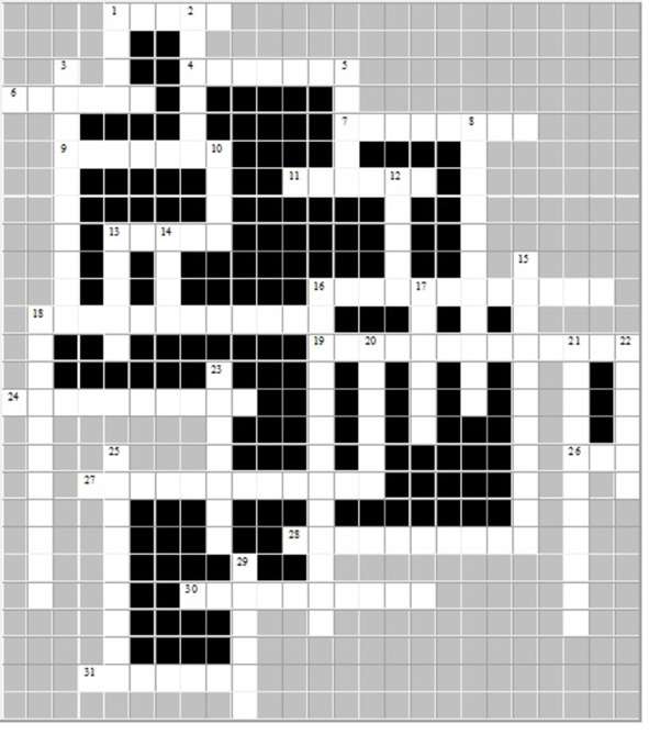 По горизонтали: 1. Хлебный злак. 4. Сложное культовое сооружение из громадных камней или каменных плит. 6. Палка с прикрепленным к ней наконечником из рога или камня, используемая при обработке земли. 7. Вид ремесла. Изготовление изделий из прутьев, лыка и т. д. 9. Мелкое ручное производство каменных и металлических изделий, посуды, тканей и др. при помощи простых орудий труда. 11. В древних религиях: приносимый в дар божеству предмет или живое существо 13. Пластичная горная порода, применяемая для изготовления посуды, кирпича и т. д. 16. Совокупность письменных памятников какого-либо народа, какой-либо эпохи. 18. Общественный строй, характерной чертой которого является широкое использование труда рабов. 19. Воссоздание облика здания, статуи, орудия труда, иного предмета по сохранившимся остаткам и описаниям. 24. Занятие людей, возникшее из собирательства. 26. Прядильная сельскохозяйственная культура. 27. Занятие, возникшее из охоты вследствие приручения, а затем и разведения животных. 28. Вид ремесла. Изготовление изделий из глины. 30. Ограниченное земельное пространство. 31. Просьба, обращенная к Богу.
