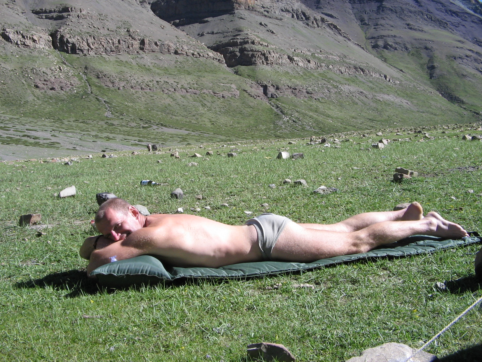 Но больше сюрпризов Кайлас нам не преподнёс. Палатка, правда, лежала на боку, опрокинутая не то ветром, не то каким-то шутником, и не улетела, видимо, только из-за неподъёмного веса моего рюкзака. Стенка, ставшая крышей, прогнувшись, собрала лужу, но внутри всё было сухо. И даже в таком положении она никого не заинтересовала, никто не посягнул на чужие вещи.