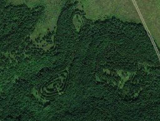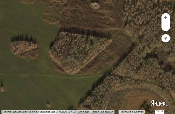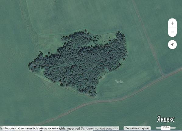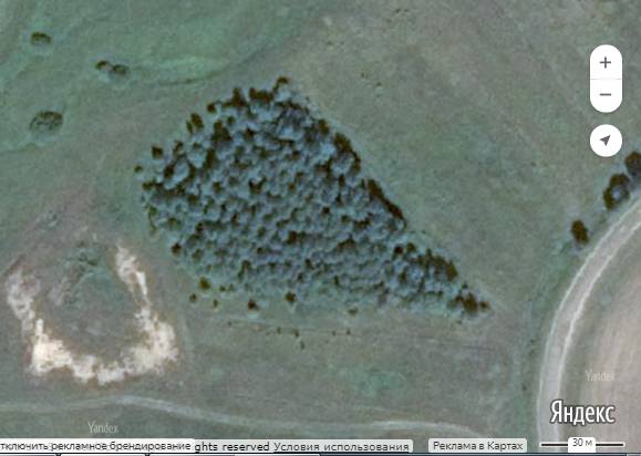 Кстати, над «рогами» «нашего» геоглифического «Лося», хорошо видны два шарообразных образования, формируемых старицами реки Лосьма и лесным массивом, которые, вероятно, являются составной частью рисунка и символизируют Солнце и Луну «на рогах» поднимаемых Лосем в небо (снимок 32) .