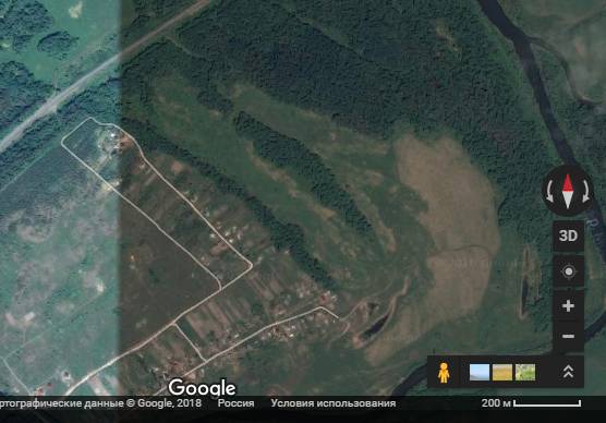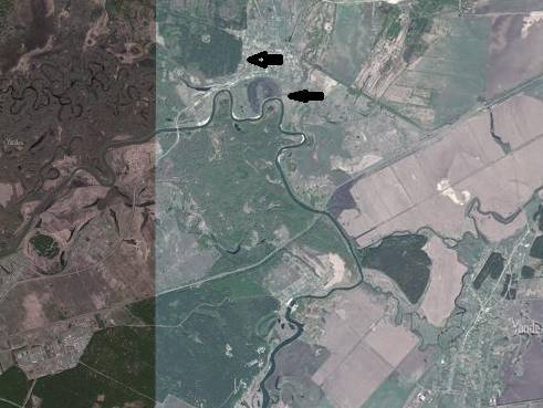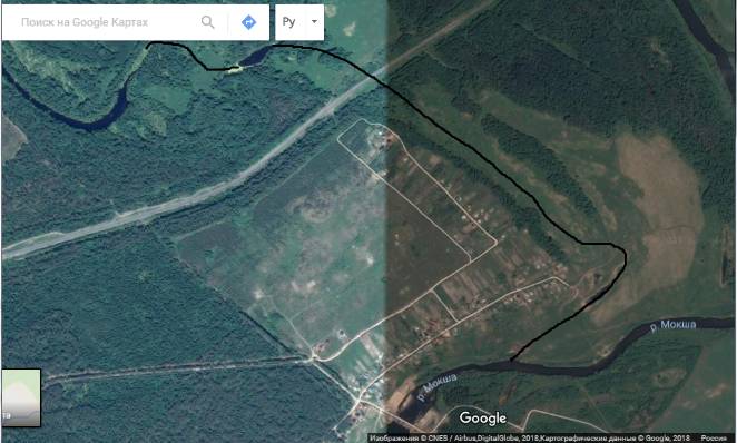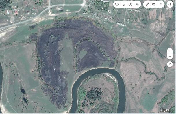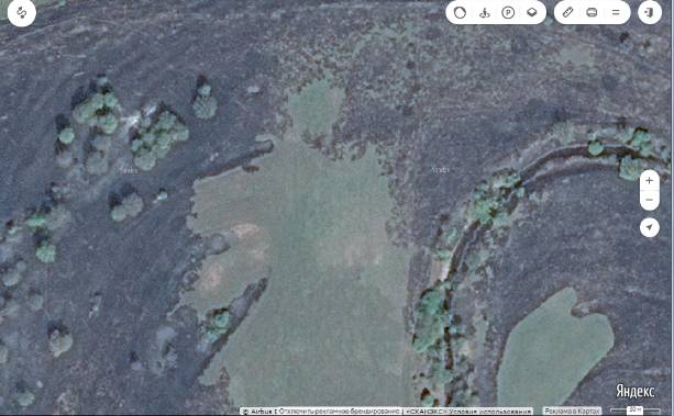 Степень деградации, а, следовательно, и возраст староречий примокшанской поймы вблизи д. Андреевка, возникших в процессе создания геоглифа «Лось» может быть оценена по спутниковым снимкам (снимки 29 и 30).