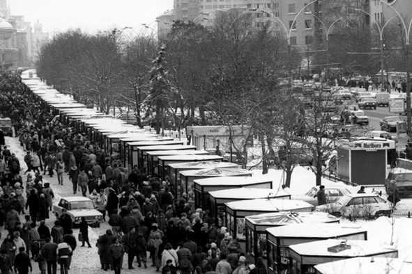 Это была тревожная заря капитализма. Это была пора «челноков», диких базарчиков, «собачьих будок». Особенно заметны были будки. Их создавали из различных материалов. Чаще всего – из листового железа. Ряды этих примитивных сооружений тянулись на оживлённых перекрёстках и у станций метро обязательно. Народ толпился перед будками, хотя ассортимент, предлагавшийся «предпринимателями» был скуден и однообразен: жевательные резинки, сникерсы, сигареты, напитки и т. п. Рядом с будками пристраивались лёгкие павильоны, где торговали овощами, фруктами, рыбой, мясом.