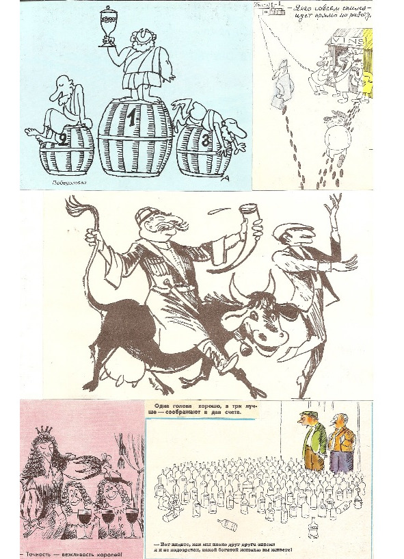 1. Победитель. 2. Янко совсем спился – идёт прямиком на работу!. 3. Одна голова – хорошо, а три лучше – соображают в два счёта.. 4. Точность – вежливость королей. 5. А я и не знал. какой богатой жизнью вы живете!