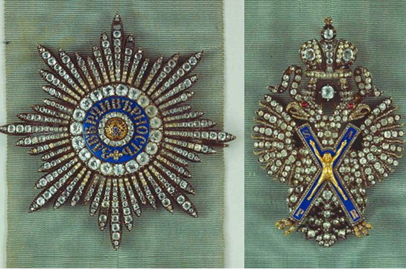 Предположительно в 1698 году Петр учредил первую в России государственную награду: орден Святого апостола Андрея Первозванного. Это была награда для царей, вельмож, генералитета.. Крест ордена носился у левого бедра на голубой ленте (в торжественных случаях – на цепи). Восьмиконечная звезда ордена укреплялась на левой стороне груди.