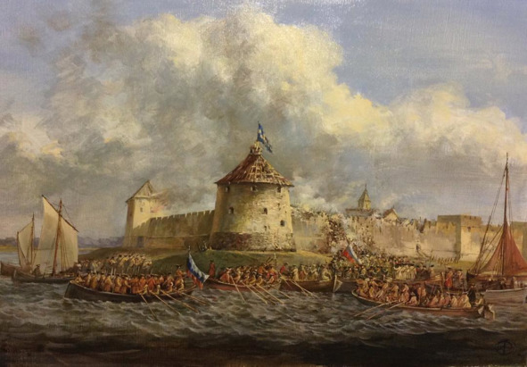 Осенью 1702 года Петр с войском, возвращаясь из аржангельска, соединился с полками Шереметьева и подошел к истокам Невы, чтобы взять Нотебург.