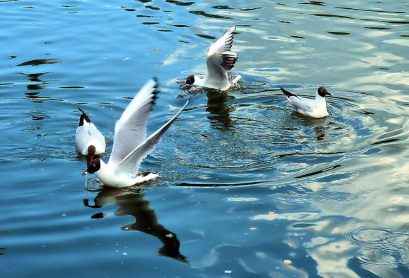 Чайки сели в воду