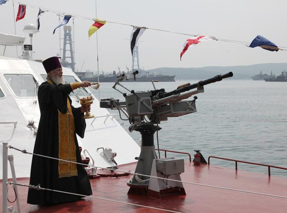 Однако малое количество кораблей в Российском флоте не должно нас смущать. Теперь-то Российский флот, несмотря на отсутствие авианосцев, на малочисленность крупных кораблей, на устарелость многих кораблей, непременно начистит жопу любому иностранному флоту. И не только потому, что по палубам зашастали батюшки, а и потому, что ВМФ РФ заимел аж трёх небесных покровителей: Святого Николая, епископа Мирликийских, апостола Андрея Первозванного, святого праведного воина Фёдора Ушакова, а подводников ещё оберегает пророк Иона, который под водой в чреве кита путешествовал.