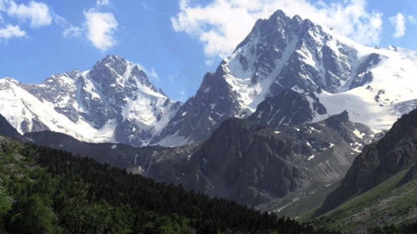 В течении недели, постепенно забираясь всё выше и выше туристы осилили основную часть маршрута. Остался завершающий спуск к цивилизации, к морю, к пляжному ничегонеделанию. Перед спуском остановились на днёвку, чтобы помыться, побриться, простирать пропахшие потом рубахи и вообще отдохнуть. Сразу все сбросили лишнюю одежду и стали наслаждаться горячими лучами горного солнца. Лагерь разбили на муравчатом склоне с отдельными кустиками самшита на нём, перед лицом голубого, прозрачного озера. Из озера вздымалась наклонная, гранитная стена, завершавшаяся высоко наверху мощной шапкой то ли льда, то ли снега.
