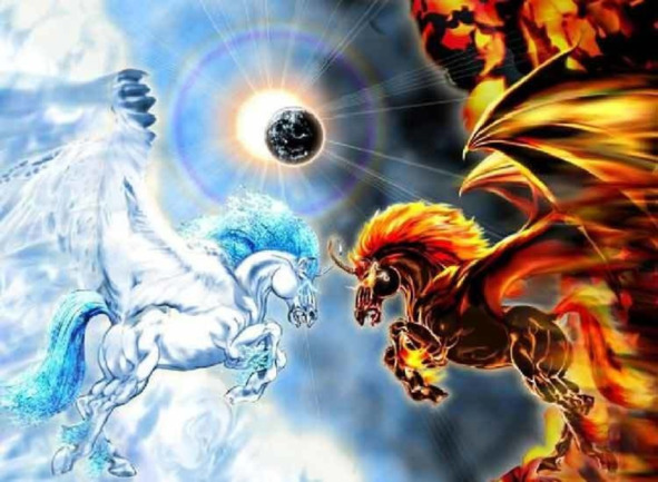 Глаза горят – огонь небесный,Сверкает златом щит чудесный,И шлем блестит, и чешуяОбъята пламенем огня.Вокруг ни солнца, ни святил, —Их кто-то в бездну укатил,Но сквозь умершие просторы,Где нет ни точки, ни опоры,Небесный Воин быстро мчится,Крыла расправив, словно птица;И тьму огнем своим гоня,Он бесов крестит Светом дня.Они кричат и рвутся прочь,Опять в безжизненную ночь,Где их удел и опошленье;Им Воин – вечное гоненье.Глаза чернеют – дети ночи,Щит чёрный смертью опорочен,Эмблема дьявола на лбуИ перстень власти на табу…Вокруг добро и солнца свет,Царит тут мир уж сотни лет,Но вот врывается мрак, крыльяРаскрыв над доброй славной былью,И, тень греха на все бросая,В сплошную тьму мир превращает.Он – Ворон Чёрный, чистый бес,Он в свет через портал пролез.Его боятся – он и рад,Извечный Тёмный Святотат.Несёт лишь зло он – Воин Чёрный,Один из лучших, тьме покорный.Один – сквозь тьму, сияя, мчитсяВторой – по свету, как волчица,Бредёт, ко всем питая месть,С призваньем грех и чернь в свет несть.Они всё ближе. Уже круг:И тьма и свет уже вокруг;Их столкновенье неизбежно,Безукоризненного с грешным.Война добра и зла извечнаИ до предела бесконечна:Пусть воин будет тьмы сражен —Другой полезет на рожон,Пусть воин света будет сбит —Другой его поднимет щит…И так проходят сотни лет:Борьба идёт – покоя нет…