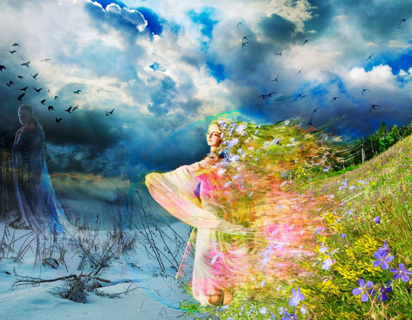 Новой зарёй весь восток озаряетсяСнова и снова не зря,Свежей и чистой водой наполняютсяСотни столетий моря,Платье живое земли обновляетсяКаждой пришедшей весной —Цикл повторяется, всё изменяетсяВслед за холодной Луной.Вечен закон (ему всё покоряется):Круг замыкается вновь:В мире большом день и ночь нарождается,Не умирая, – ЛЮБОВЬ.