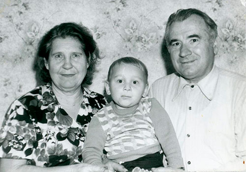 Саша с бабушкой и дедушкой. Гродно, 1989