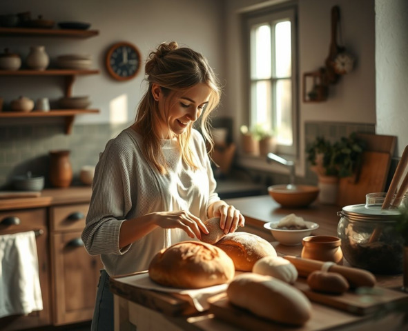 Хлеб на Закваске (Sourdough): Изготавливается с использованием закваски – смеси муки и воды, содержащей дикие дрожжи и молочнокислые бактерии. Он имеет сложный кисловатый вкус и более длительный срок хранения.