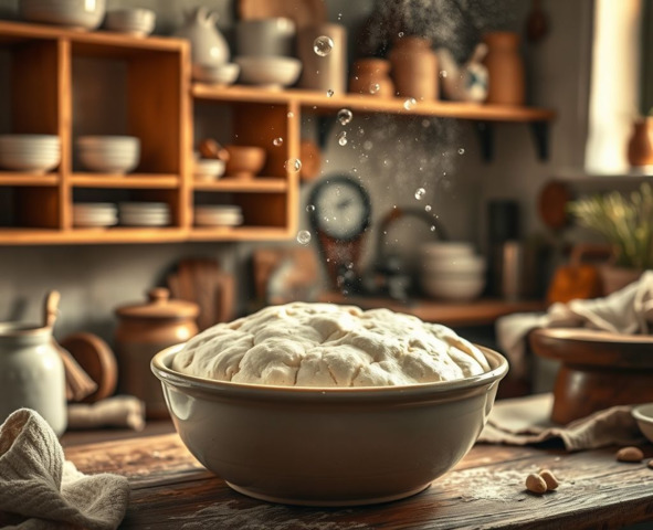 Брожение теста: Время, необходимое для того, чтобы дрожжи (или закваска) разрыхлили тесто и придали ему объем.
