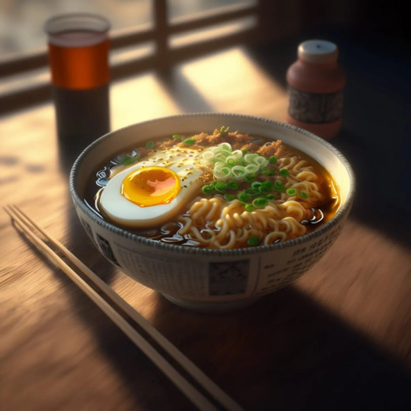 История: В одном маленьком городке на Хоккайдо был раменный ресторанчик, который славился своим уникальным мисо раменом. Хозяин ресторана, старый мастер по имени Кенджи, годами экспериментировал с разными видами мисо и ингредиентами, чтобы создать идеальный вкус. Он использовал местную мисо-пасту, приготовленную по старинному рецепту, и добавлял в бульон секретный ингредиент – морские водоросли, которые придавали супу неповторимый аромат. Рамен Кенджи был настолько вкусным, что люди приезжали в его ресторанчик со всей Японии.