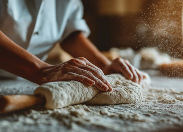 Складывания: Складывания теста помогают развить глютен и укрепить структуру хлеба.