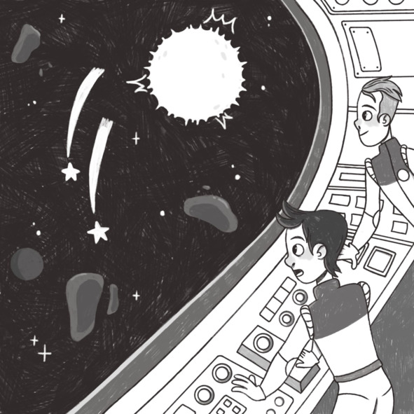 Если Сенькин папа вдруг чем-то сильно занят – читает какие-нибудь там научные статьи в планшете или пишет в блокнот – то за наши уроки берётся Андрей Львович, космонавигатор и второй пилот. Такой высокий дядька, худой, волосы у него чёрные, а вот аккуратно подстриженная борода отчего-то седая, хотя он совершенно ещё не старый. Ох и гоняет же он нас, особенно по астрономии и по своей любимой математике! Сеньке проще, он самые сложные примеры иногда даже в уме решать может, а вот мне приходится совсем несладко. Хотя во всём остальном Андрей Львович очень даже весёлый и добрый. Когда не его вахта, он и кучу историй разных знает и анекдотов, и поиграть с нами в шахматы никогда не отказывается. А ещё он заведует на корабле обсерваторией – это такое место, откуда за звёздами наблюдают.
