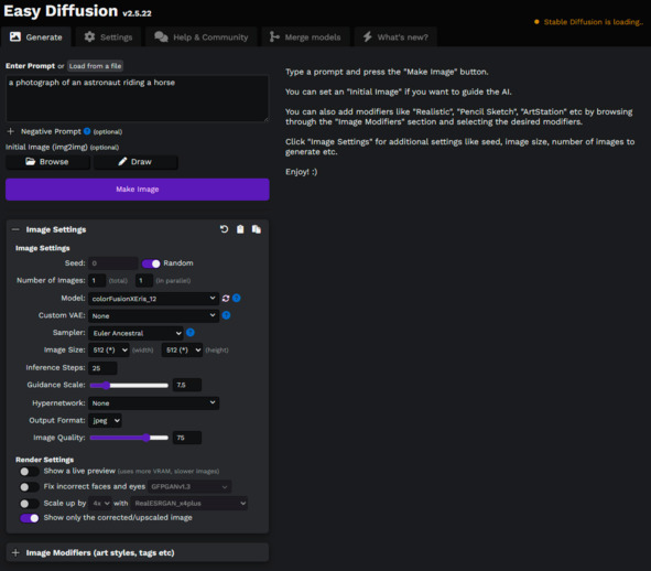 Вы счастливый обладатель собственной системы искусственного интеллекта Easy Diffusion, установленной на ваш персональный компьютер.
