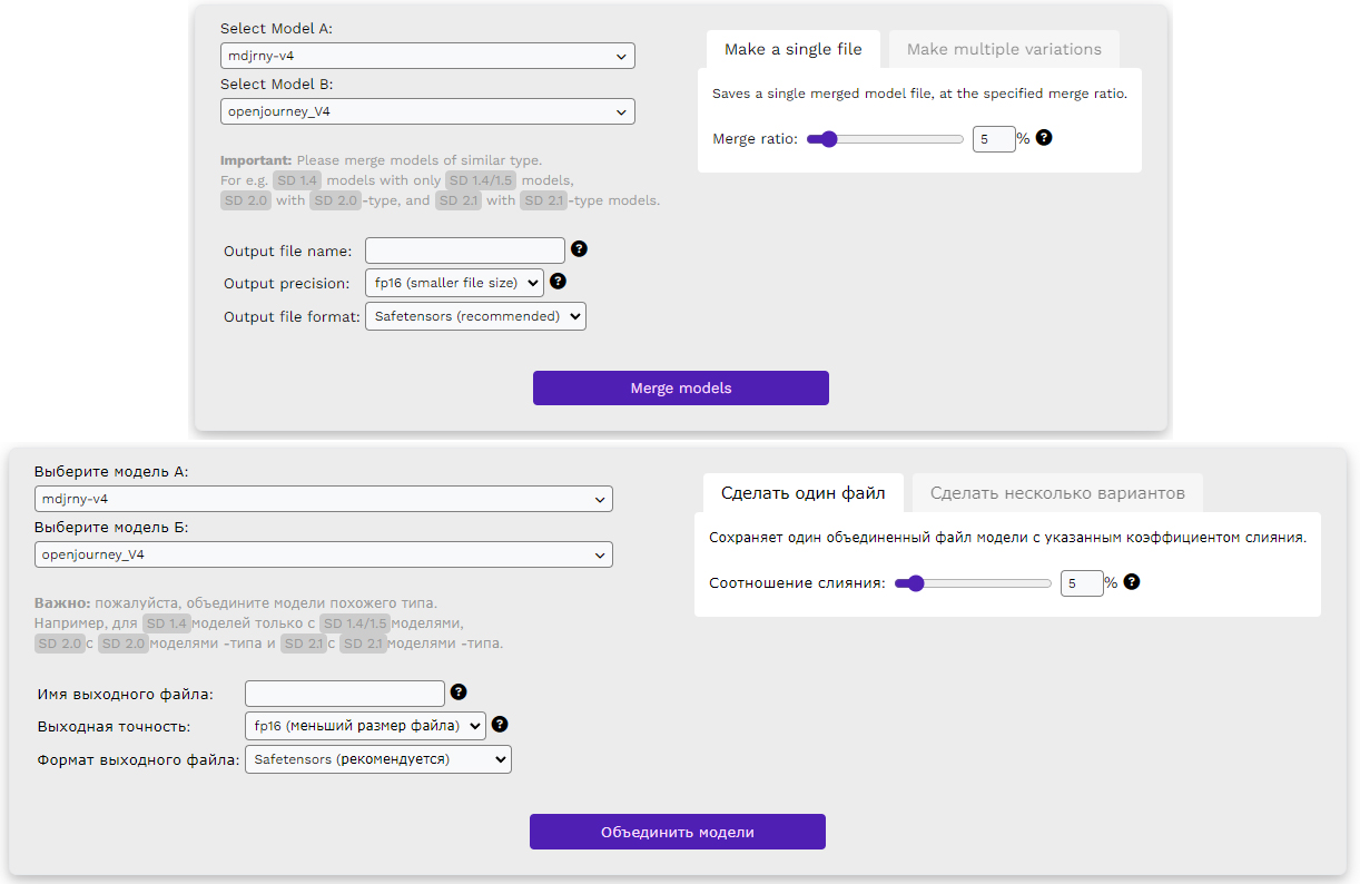 Из своего опыта скажу, что в объединении моделей особой необходимости нет. Но, если вы будете пользоваться двумя десятками разных моделей, возможно, вам пригодится данная функциональная возможность приложения Easy Diffusion для объединения по нужным тематикам или стилям.