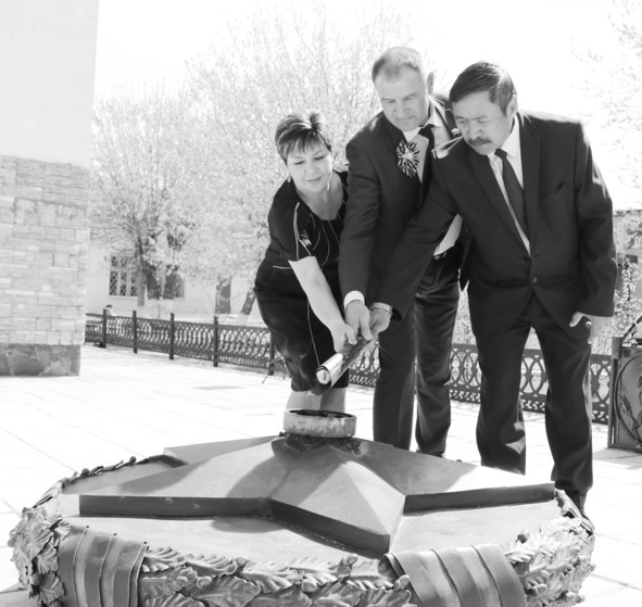 У мемориала в этот день собралось множество людей: местные жители, ветераны, сотрудники администрации, волонтеры и школьники. И вот он, долгожданный момент —Вечный огонь зажжен.