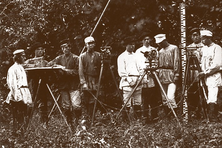 Курчатов (третий справа) на геодезических работах в пригородах Симферополя. 1919 г. [38]