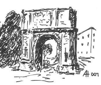 И дальше, мимо Форума и Колизея, вверх по ступеням на холм Монте-Оппио, где можно, наконец, вытянуть натруженные ноги под столиком бара, на расстоянии протянутой руки, фигурально выражаясь, от 3-го этажа Колизея. Tак что всё ещё нескончаемая толпа зевак, бредущая вдоль его фасада далеко внизу, остаётся вне нашего поля зрения. И, как писал Павло Тычина по-итальянски утончённый украинский поэт: