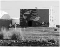 Эти две гигантские статуи возглавляют галерею более современных произведений искусства в виде сварных конструкций и настенных росписей, украшающих довольно невыразительные постройки вдоль Мэйн стрит.