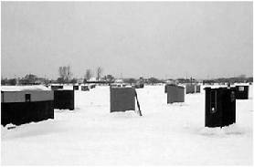 Зимой же озеро покрывается толстым слоем льда, на котором размещается целый палаточный город рыбаков с машинами, портативными грелками и другими удобствами.