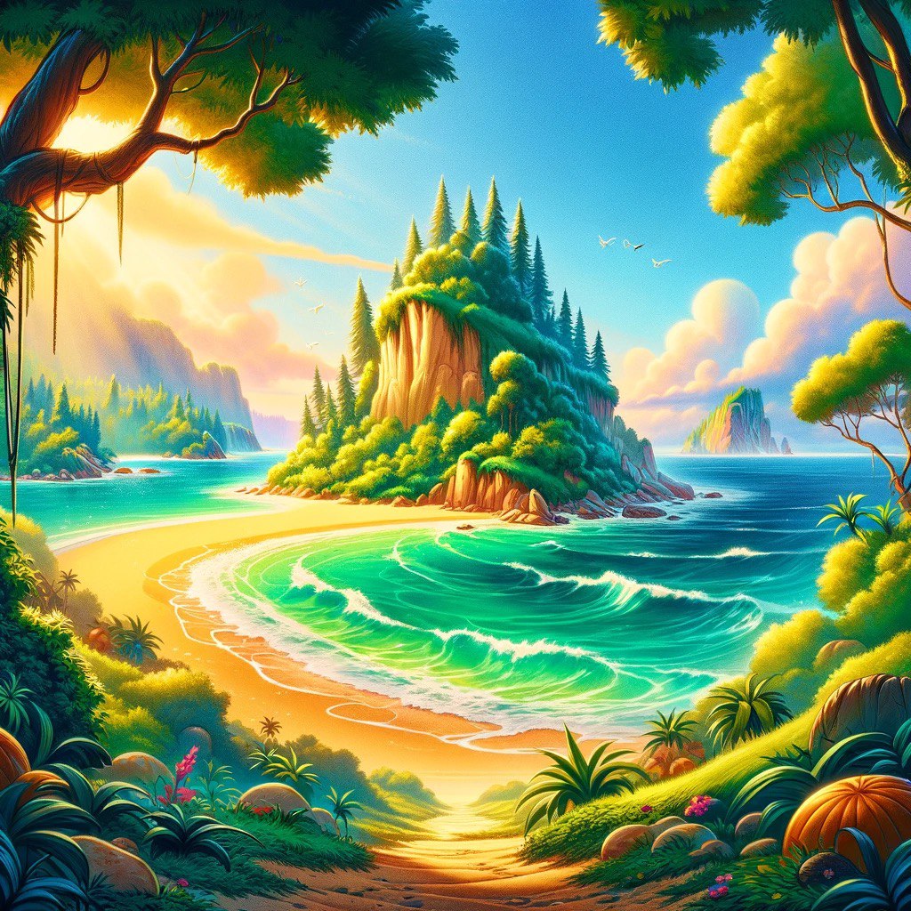 Выход из вагона ознаменовал начало новой главы в их жизни. Их взоры были прикованы к далеким очертаниям Острова Развлечений, который, казалось, светился изнутри, обещая незабываемые впечатления. Вдоль пути, ведущего от станции к Острову, росли пышные зеленые деревья, а воздух был пропитан запахом океана и приключений.
