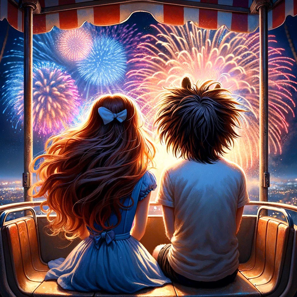 Момент спустя, казалось, что сама природа затаила дыхание в ожидании чуда. И вдруг, как ответ на их мольбу, на противоположной стороне Парка вспыхнул волшебный фейерверк, освещая ночное небо множеством разноцветных огней. Это зрелище было настолько внезапным и волшебным, что Эшли и Боб на мгновение забыли о своих заботах, они были поглощены красотой перед своими глазами.
