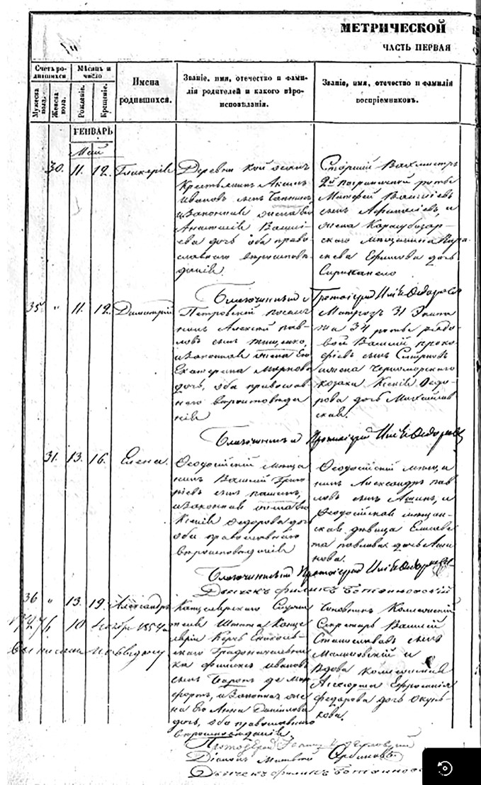 До революции в России не существовало свидетельств о рождении, бракосочетании или смерти. Рождения, браки и смерти регистрировались в церквях и записывались в церковных метрических книгах. Обычно через несколько дней после рождения родители несли ребенка в местную церковь, где над ним совершался обряд православного крещения, т. е. посвящения в православную веру. При этом помимо родителей при крещении должны были быть воспреемники новорожденного – крестный отец и крестная мать, которые официально записывались в метрическую книгу как свидетели крещения. Крестные оставались близкими ребенку людьми всю их жизнь.