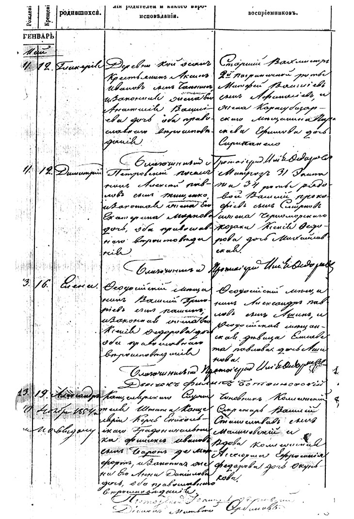 От Керчь-Еникале, где служил Феликс, до Феодосии, где он крестил Александра, – почти 100 км., но Феликсу пришлось крестить Александра в Феодосии потому, что там до последнего времени жил и служил его старший брат Леонард и там жили воспреемники – крестный отец коллега Леонарда чиновник Феодосийского военного госпиталя Коллежский Секретарь Василий Станиславович Малиновский и та же крестная мать Ефросинья Федоровна Окунькова. Леонард крестил своих детей в той же Феодосийской Александро-Невской церкви. На момент рождения Александра Феликсу было 27 лет, его жене Анне – 22 года.
