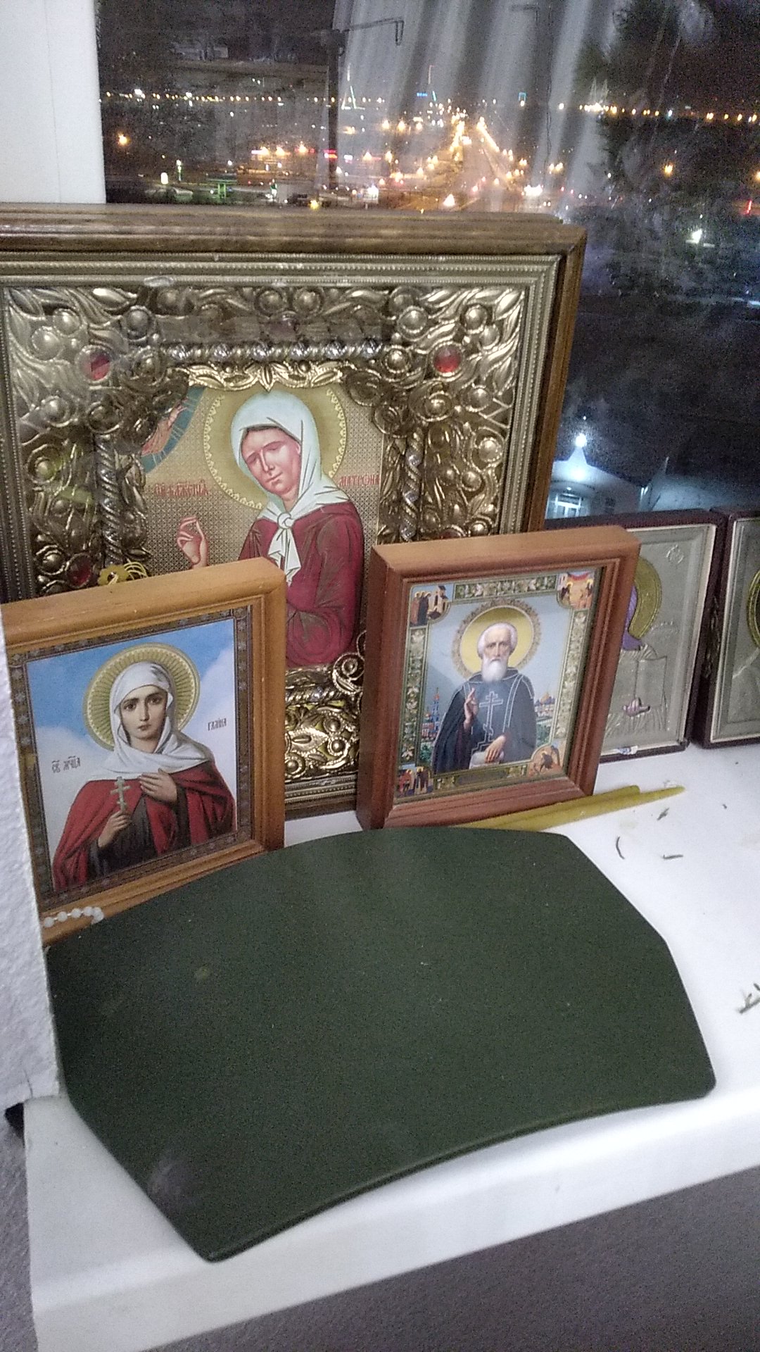 При прямом попадании такая пуля должна была пробить и броник, но она попала в самый край, в самую изогнутую часть бронепластины – согнула её ещё больше, потеряла свою убойную силу и ушла чуть выше и чуть левее. Пластина и сейчас лежит у меня под иконами и спасибо большое снайперу, что он выстрелил так точно!