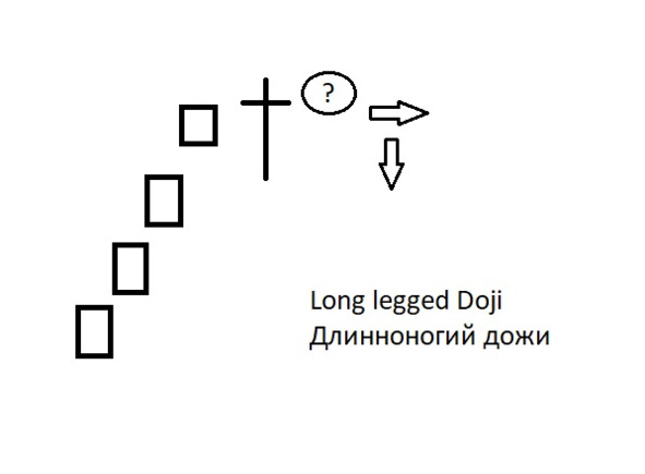 Длинноногий дожи говорит о еще большей нерешительности продавцов и покупателей, а так же сигнал высокой волатильности, которая нужна на рынке как для увеличения прибыли, так и для поедания стоп-лоссов.
