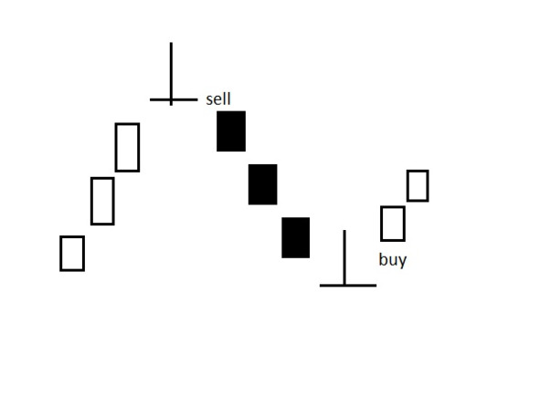 Если дожи появляется вверху тренда, это может свидетельствовать о смене тренда. По логике, если у дожи хвост вниз длинный, значит продавцы тестировали, стоит ли спускаться вниз. Они решили пока не делать этого. То же самое наоборот, длинная верхняя тень говорит о нежелании продавцов лезть вверх. Наверху же длинная тень вниз говорит о тестировании продавцами, готов ли рынок падать.