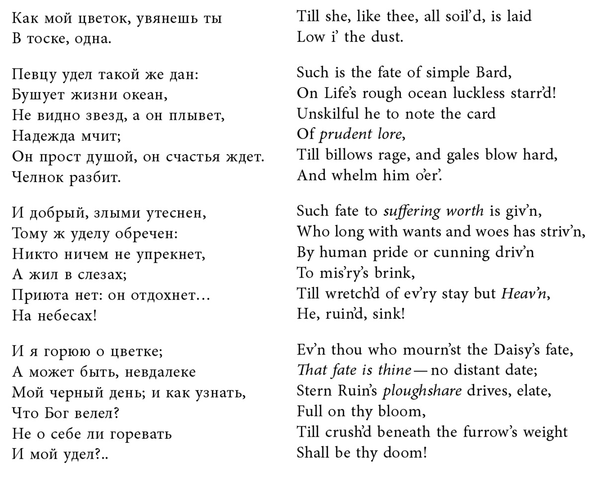 Farewell, my friends! Farewell, my foes!My peace with these, my love with those —The bursting tears my heart declare,Farewell the bonnie banks of Ayr!126Следовательно, мое утверждение, будто бы «никаких свидетельств интереса Пушкина к Бернсу не существует», ошибочно и нуждается в корректировке.