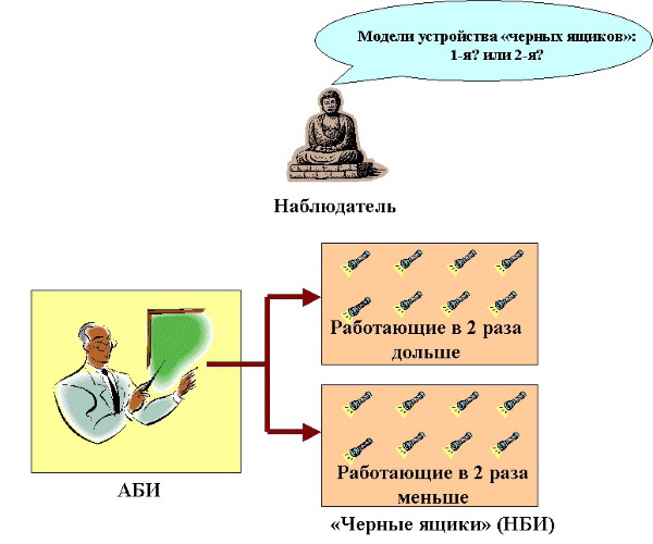Обычно, доступна наблюдению только какая-то часть объекта исследования, по свойствам которой ученый должен угадать строение объекта в целом. Например, мы можем лишь сколько угодно раз нажимать кнопку и наблюдать свет лампочки, исходящий из микроскопического отверстия. Сможет ли мы в этом случае установить сколько лампочек внутри выключателя. Вряд ли. То есть мы столкнулись с познавательной задачей, для которой нет решения, ввиду отсутствия у нас технических возможностей. Но мы можем тогда упростить задачу, чтобы получить хоть какую-то содержательную информацию о лампочке. Допустим, что у нас этих выключателей с лампочкой очень много. Тогда поставив их все в положение «включено», мы можем выяснить, хотя бы, сколько времени в состоянии светить лампочка. В результате такого эксперимента мы установили, допустим, что часть устройств горит в два раз дольше других. Отсюда можно сделать вывод, например, что в одной части выключателей в два раза больше лампочек, чем в другой. Но если при этом мы знаем размер лампочек, то, измерив коробку с лампочкой и выключателем, мы пусть обнаружили, что в коробку не может поместиться более двух лампочек. Теперь мы можем сделать обоснованный (но косвенный!) вывод, что часть выключателей содержит одну, а другая часть – две лампочки. Таким образом, мы хотя и не до конца ответили на поставленный «научный» вопрос о числе лампочек в устройстве, но, по крайней мере, показали, что в природе, вероятно, существуют выключатели с одной и с двумя лампочками. Даже из этого простейшего примера исследовательского эксперимента очевидно, насколько сложен процесс изучения объектов природы, когда доступной изучению является лишь небольшая его часть. И из выше представленного описания исследовательской деятельности, надеюсь, стало очевидным, почему мыслимые модели поведения окружающей действительности необходимо проверять экспериментально. Только так мы в состоянии отличить мыслимые модели объектов, от реально отражающих их свойства.